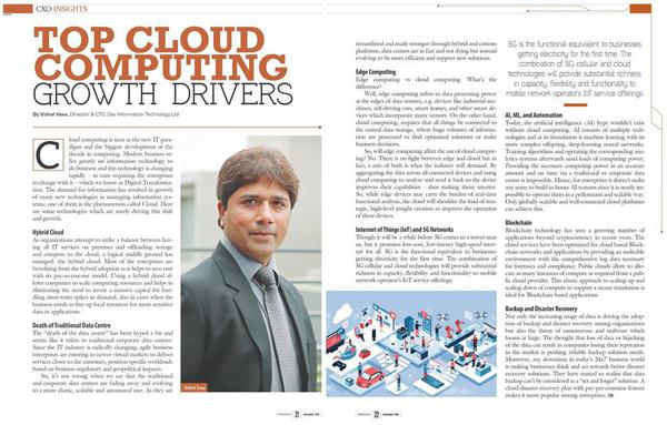 Top Cloud Computing Growth Drivers article by Mr. Vishal Vasu, Director & CTO,